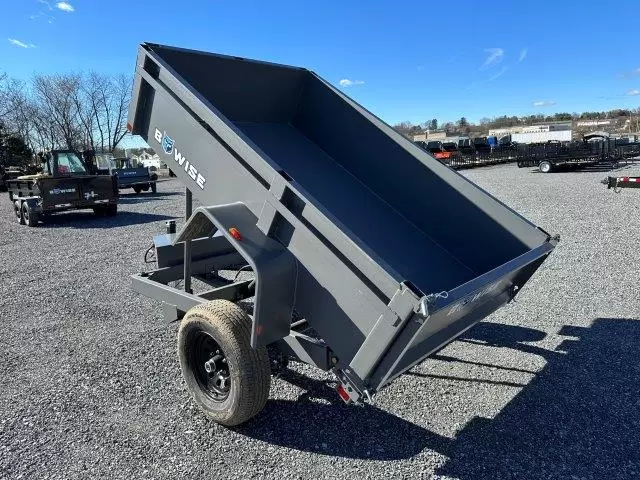New BWISE 5×8 Low Profile Dump Trailer (7,000 lbs GVWR est.), perfect for maximum maneuverability in tight residential and urban areas. This ultra-compact unit features a specialized Spreader Gate for the controlled discharge of granular materials and a stable Low Profile design for easy handling.
