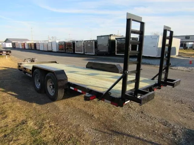 The CAM Superline 7×20 Equipment Trailer is the ultimate solution for contractors who demand high capacity and specialized equipment organization on the job site. This 20-foot tandem axle trailer boasts a formidable estimated 14,000 lbs Gross Vehicle Weight Rating (GVWR), making it ideal for hauling heavy machinery like skid steers, mini-excavators, and compact track loaders. The highly practical Pallet Fork Carrier is securely mounted to the front, ensuring that your forks are always on hand but safely stowed and protected during transit. The trailer features a reinforced steel deck, heavy-duty stand-up or fold-over ramps for easy access, and multiple strong D-rings for reliable cargo securement. This CAM Superline model provides the commercial capacity and thoughtful storage features necessary to streamline your equipment hauling operations.